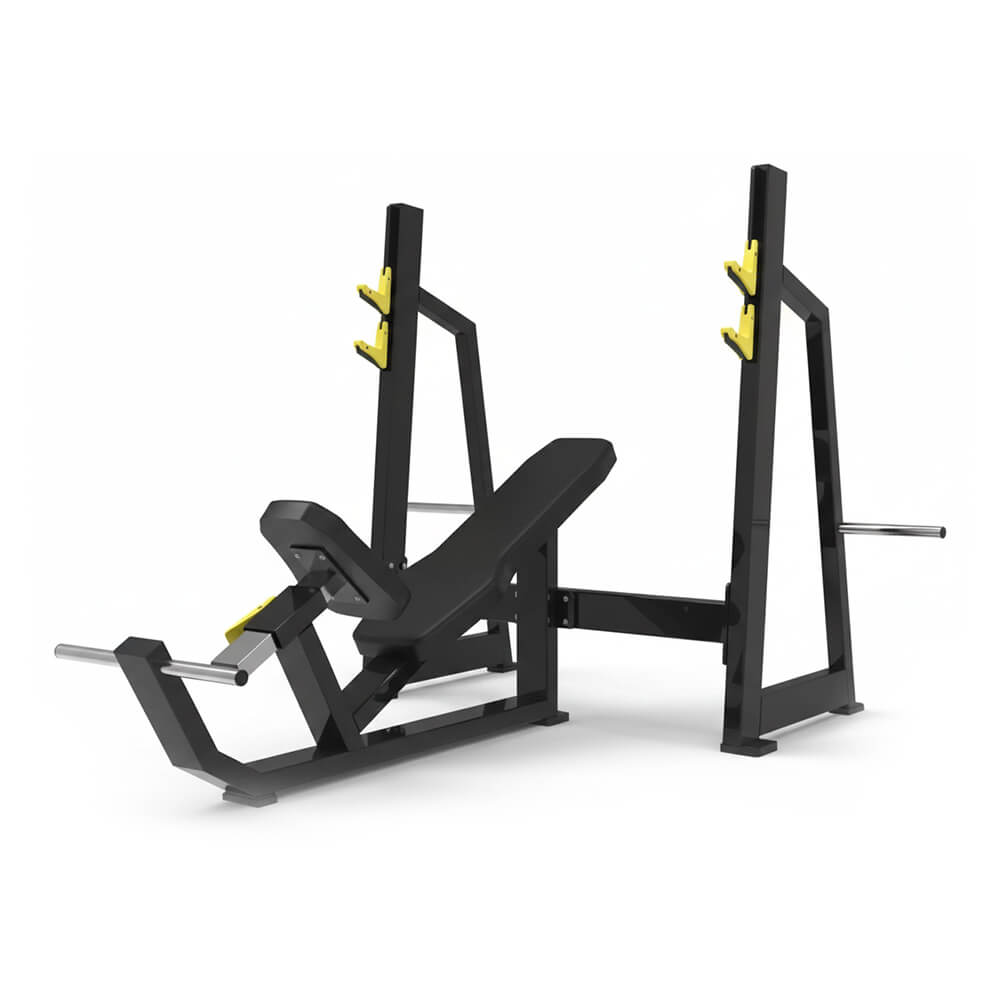 La máquina de press de banca inclinada olímpica es un equipo de entrenamiento de fuerza de nivel profesional que se encuentra comúnmente en gimnasios y estudios privados. Se centra en fortalecer los músculos pectorales superiores mediante una inclinación de entre 30 y 45 grados. En comparación con un press de banca plano tradicional, el diseño inclinado activa de forma más eficaz los músculos pectorales superiores, manteniendo la trayectoria natural del movimiento de hombros y codos, lo que garantiza seguridad y efectividad.